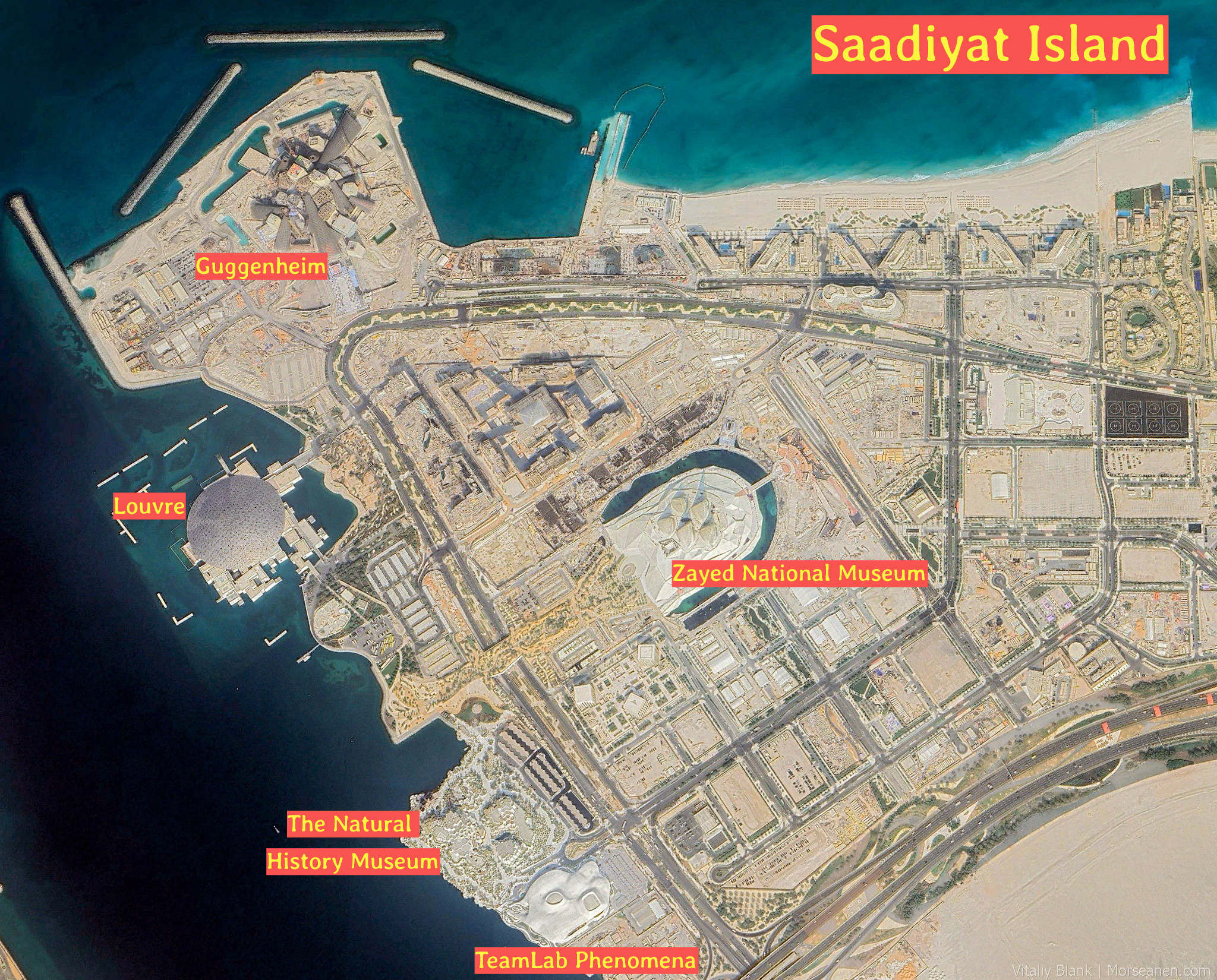 Прежде всего мне (а значит и вам) интересно, как продвинулся самый амбициозный объект Абу-Даби — застройка острова Саадият (Saadiyat)