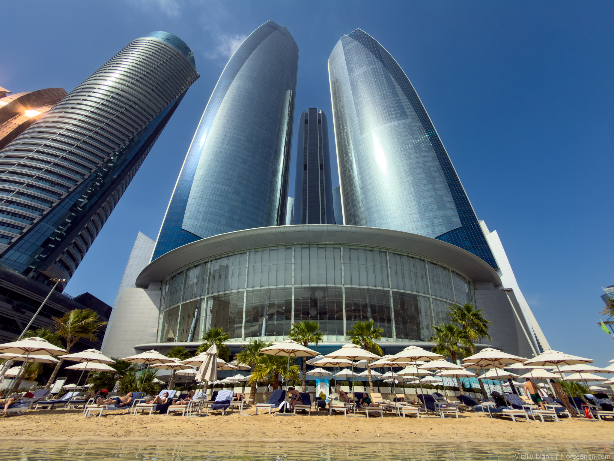 Conrad Abu Dhabi расположился на 70 с копейками этажах знакового для Абу-Даби здания — Etihad Towers. В наше прошлое пребывание в Абу-Даби пять лет назад в этом комплексе небоскребов находился другой люксовый отель из местной сетки Jumeirah. Но по каким-то причинам они снялись с адреса и его заменил Conrad.