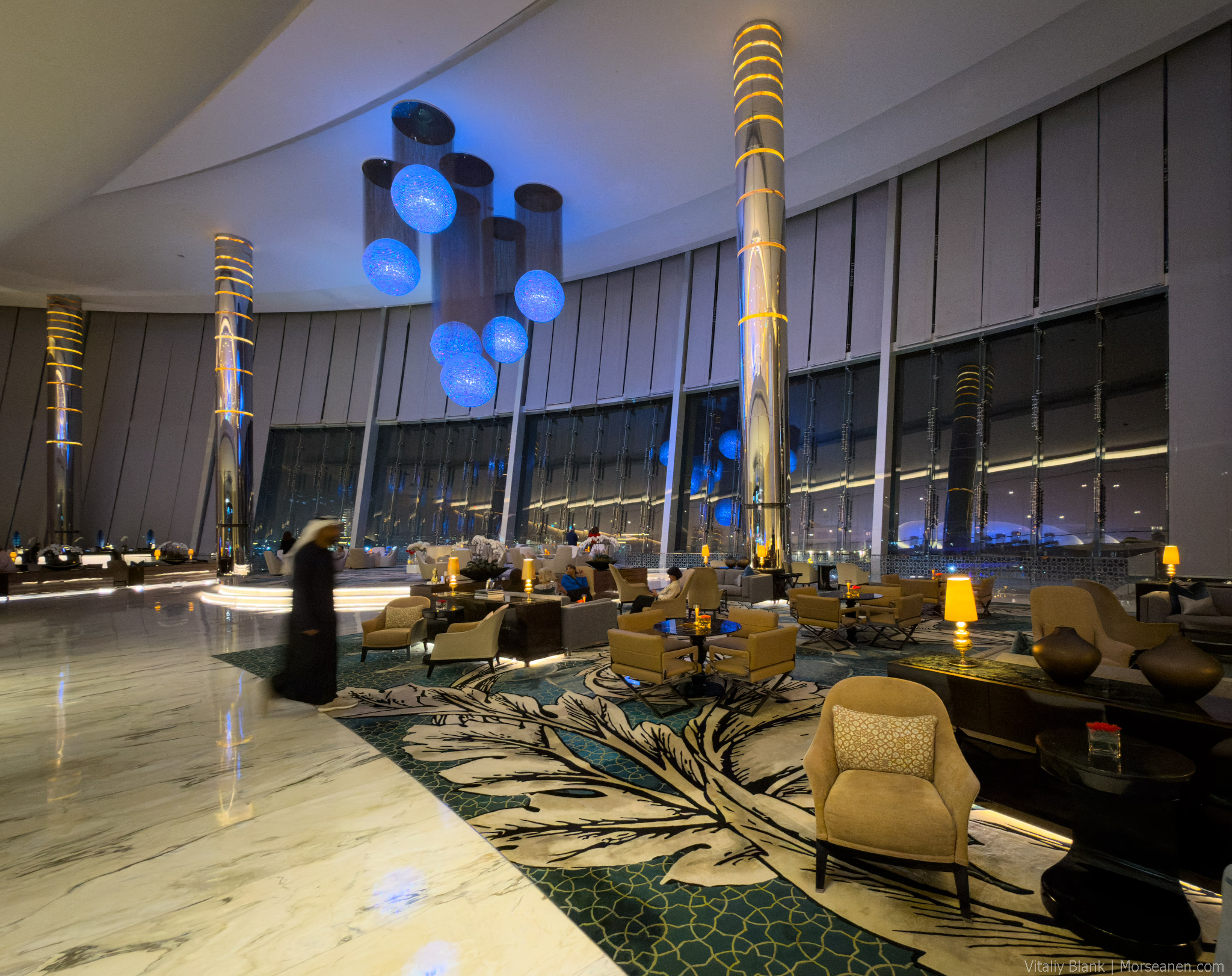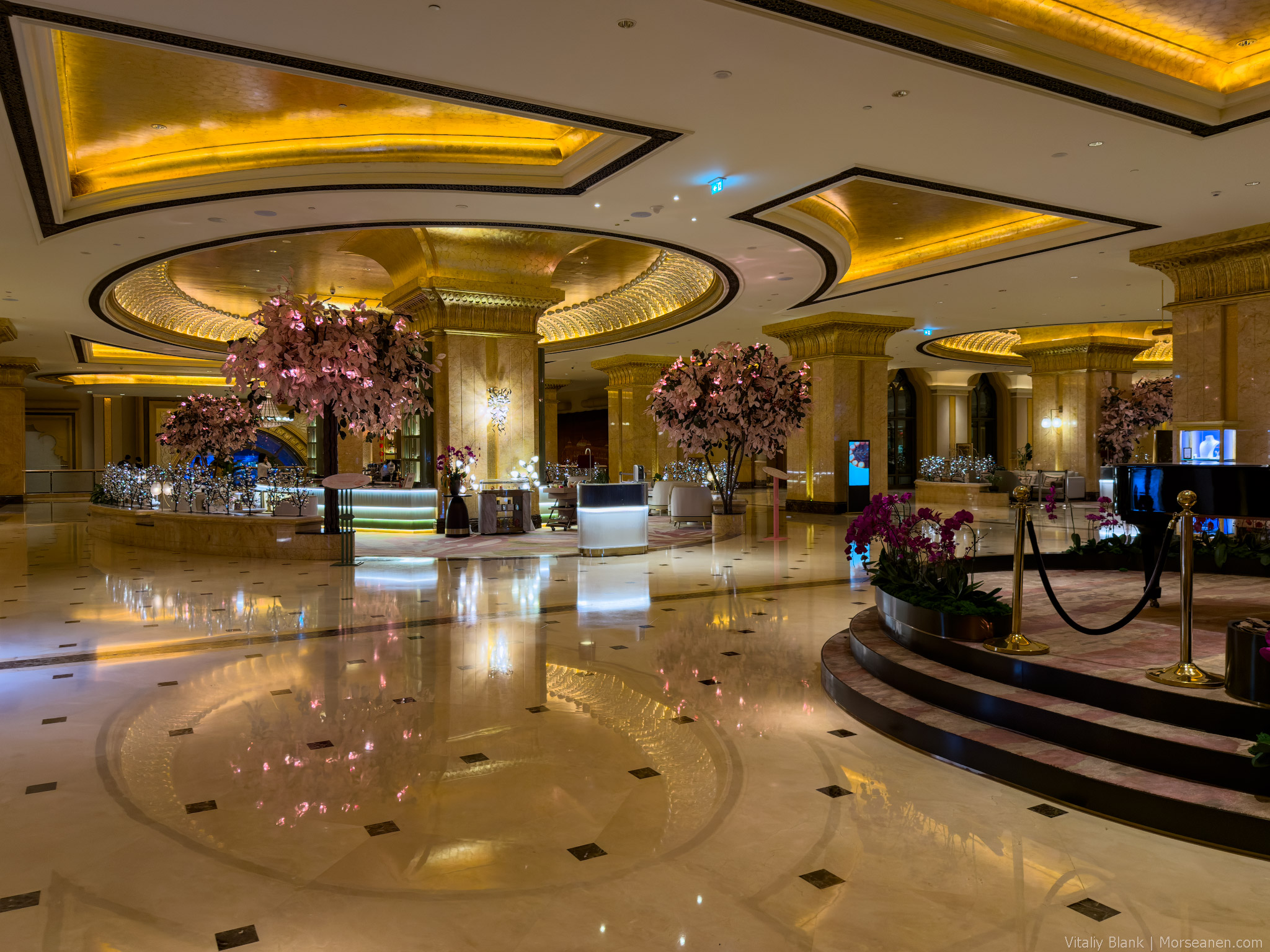 Из примечательного у отеля — масштабное лобби, где по вечерам играет живая пианистка. Такого воздушного пространства лично мне хватило у более статусного Emirates Palace.