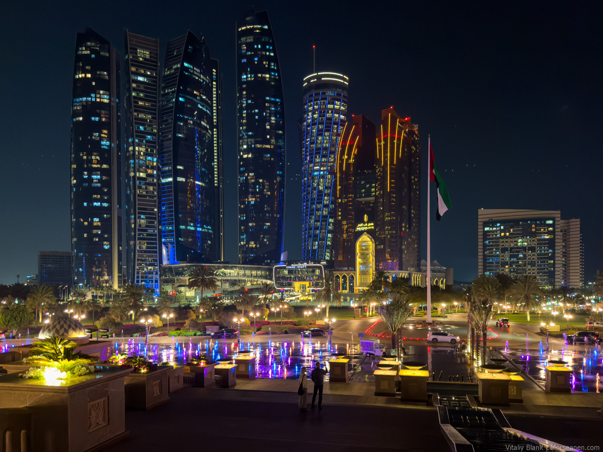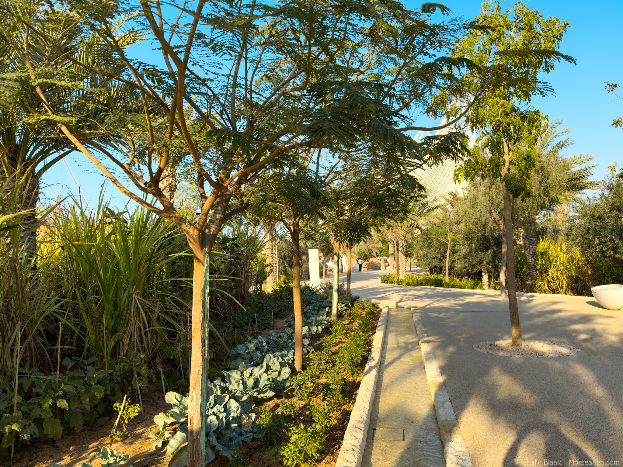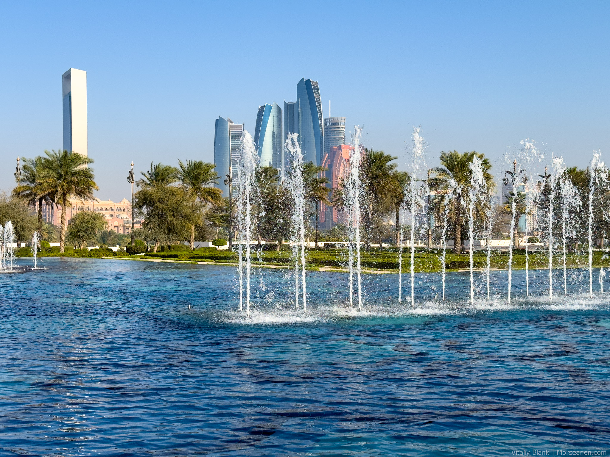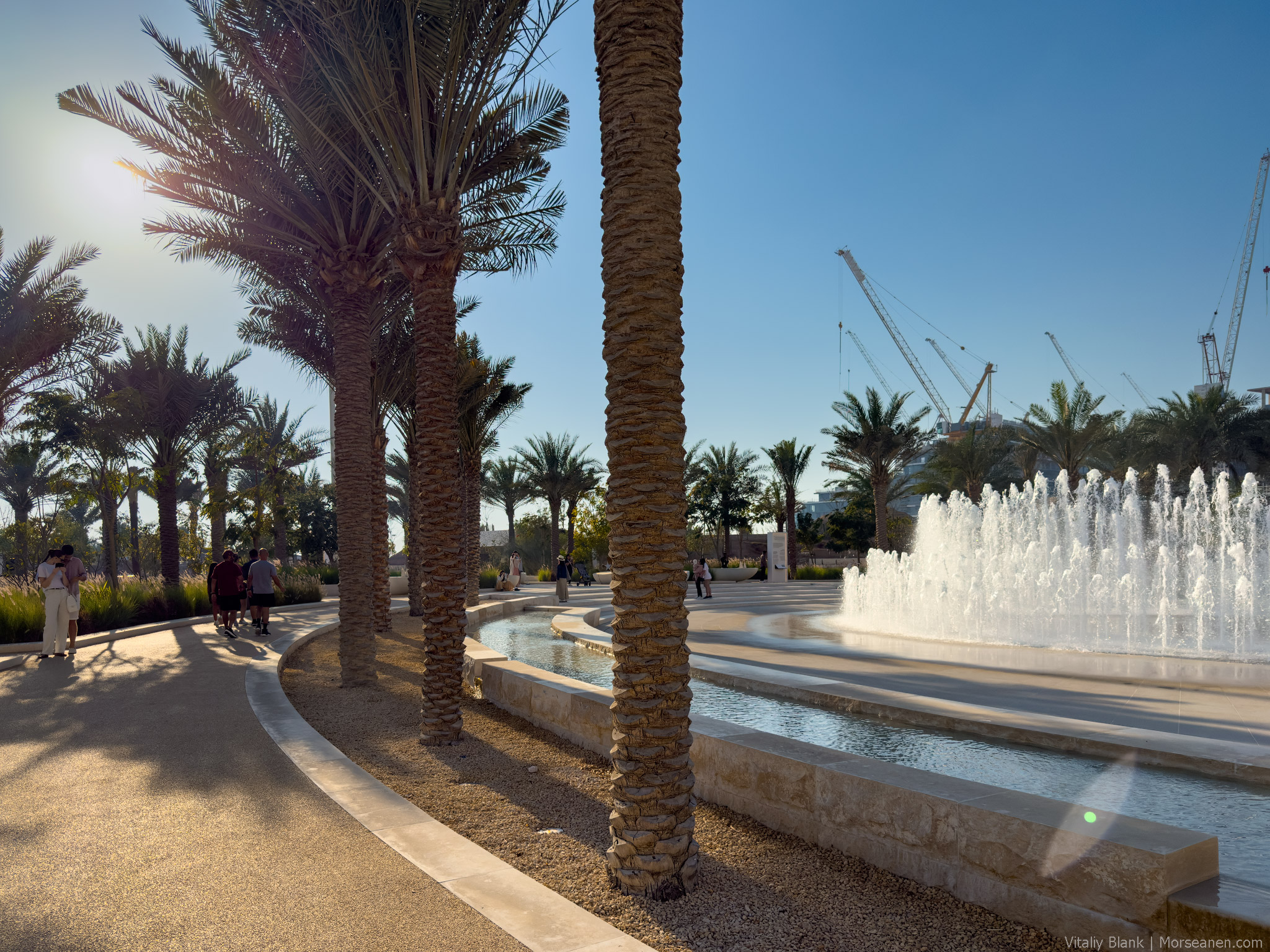 За пять лет главная фланир-миля Абу-Даби особо не изменилась. Все такой же главный вист Абу-Даби в его борьбе с Дубаем за туриста. Прогулочная зона на 6 километров. В тени финиковых пальм, в тишине от внешнего мира, вдоль прекрасных пляжей — такого нет у Дубая.