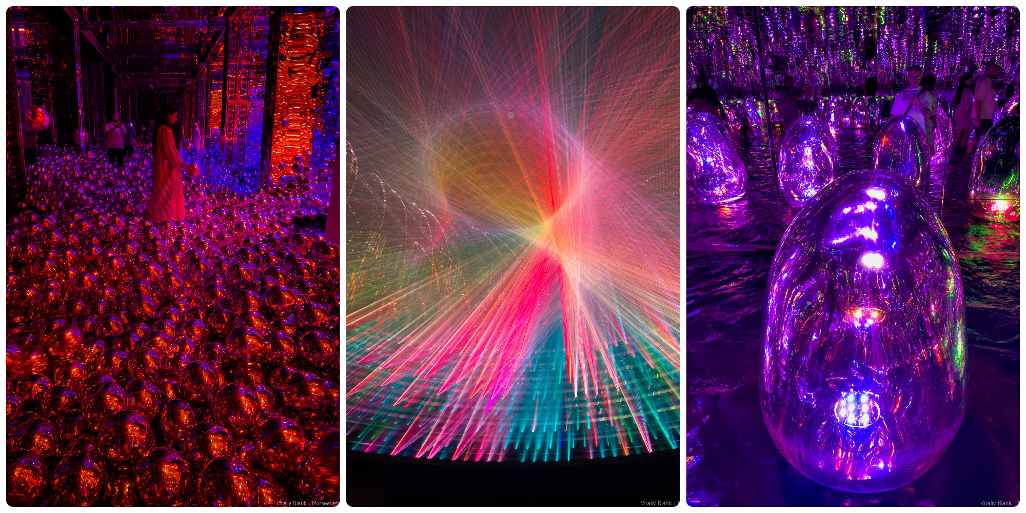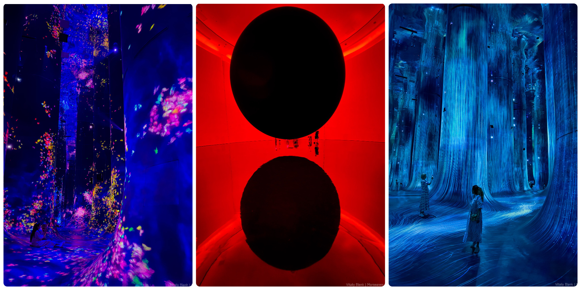 После того, как я посетил Арт-Музей от ребят из teamLab в Токио, у меня все просто: если я вижу в новом городе их инсталляцию, сразу, не глядя на цены, покупаю билеты. В жанре иммерсивного искусства еще не придумали ничего лучше и с каждым разом креативные японцы продолжают удивлять все сильнее. Если не ошибаюсь, их филиал в Абу-Даби — сейчас самый большой по площади и количеству инсталляций во всей франшизе. Поэтому уже только один этот фактор лично для меня стал главной причиной остановить рулетку выбора для отпуска именно на Абу-Даби. Смотрите фотографии (а лучше видео в ютубе). Слова тут излишни.