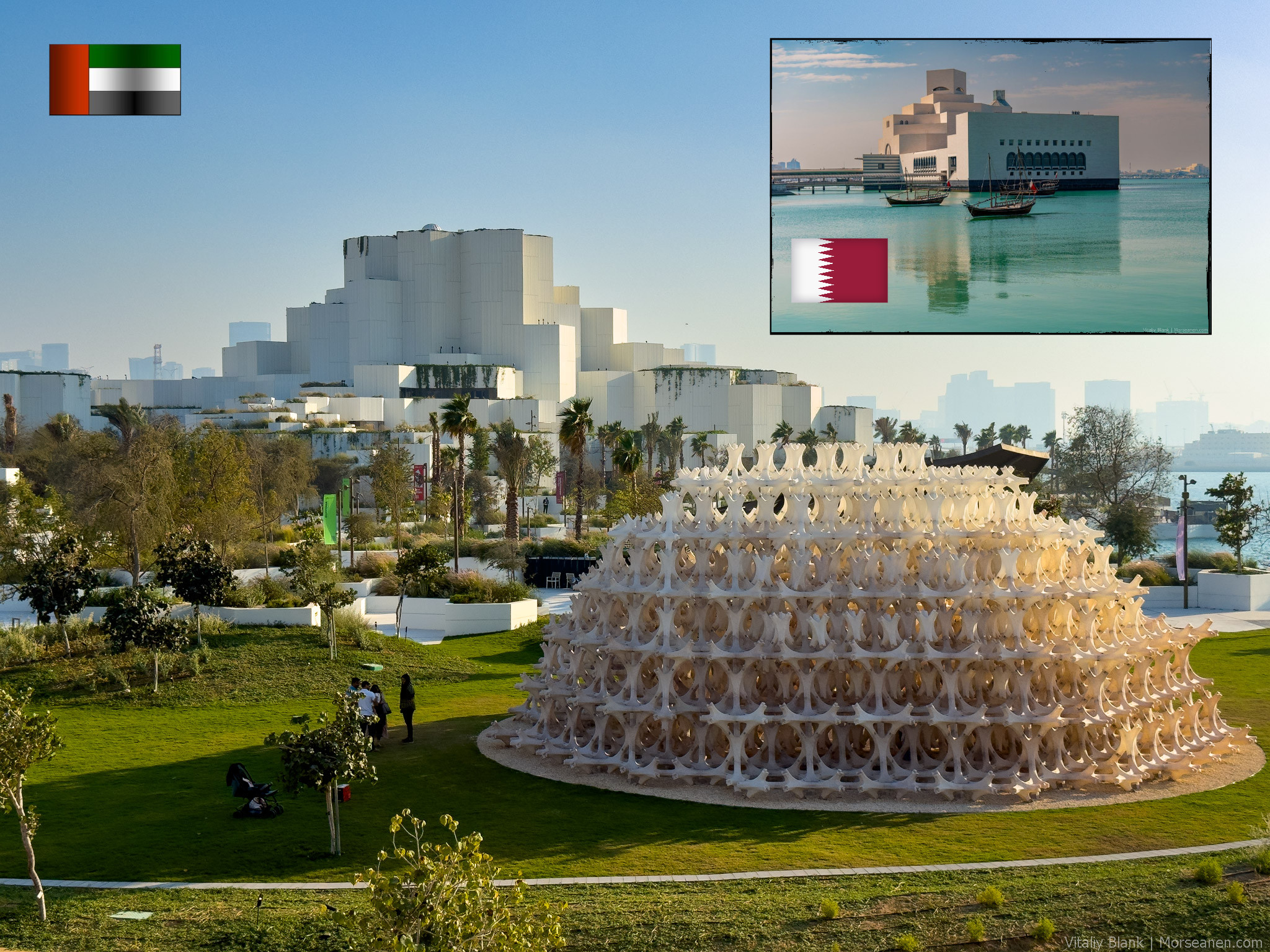 Пять лет назад на Саадияте был готов только филиал парижского Лувра. Теперь у него появились достойные конкуренты за наше с вами внимание в виде музея арабской традиции и истории ОАЭ — Zayed National Museum и музея естественной истории — The Natural History Museum Abu Dhabi.