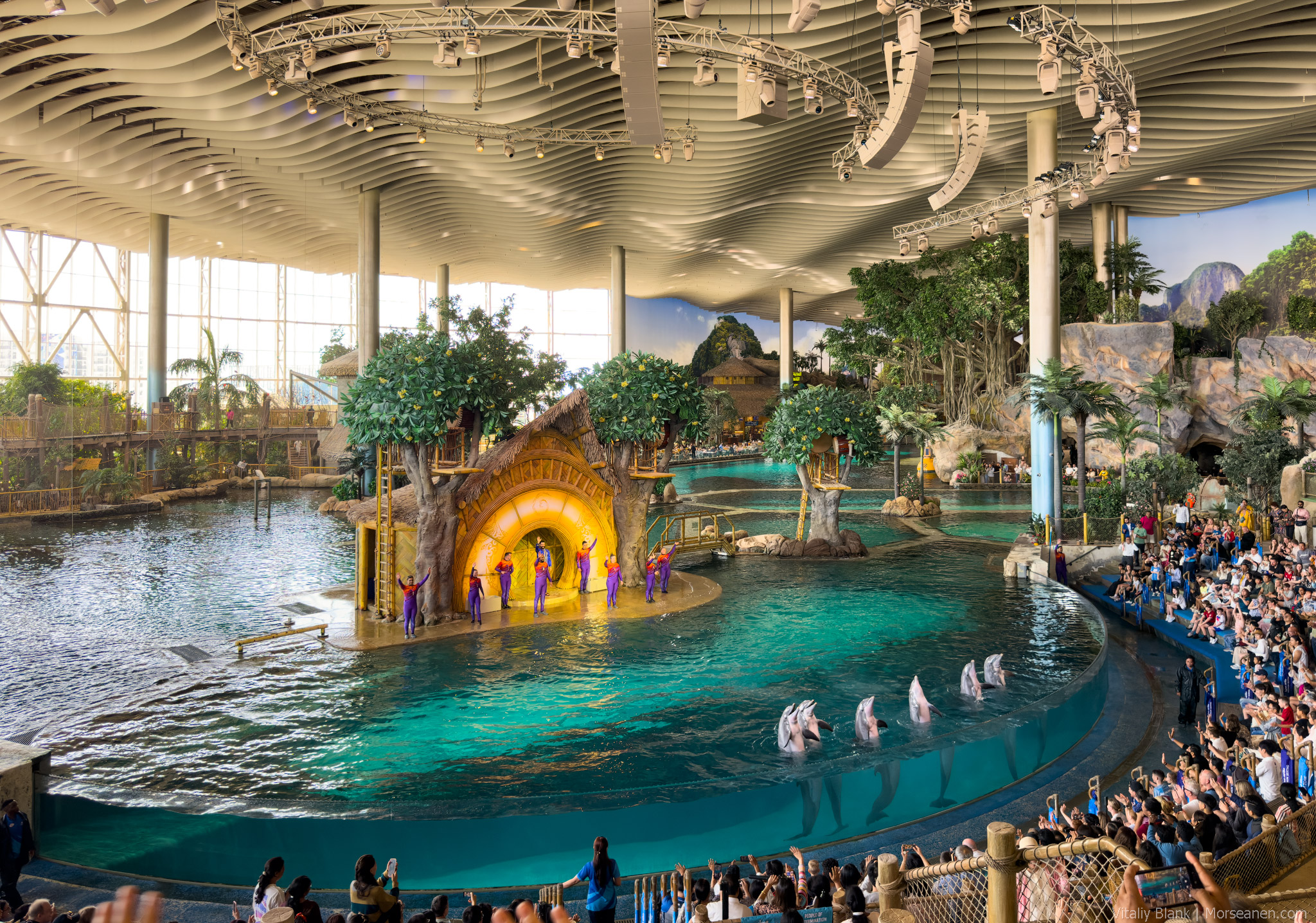 Там, ребята, 180.000 квадратных метров территории с аквариумами, бассейнами, джунглями, горами со всех (!) климатических зон🪸 планеты с немыслимой вариацией всех представленных морских тварей. И даже с шоу!