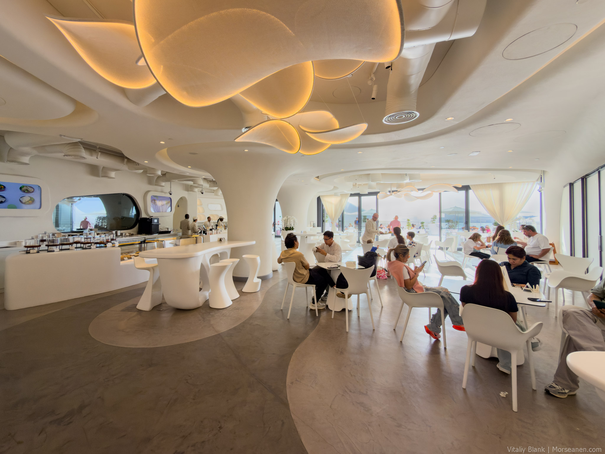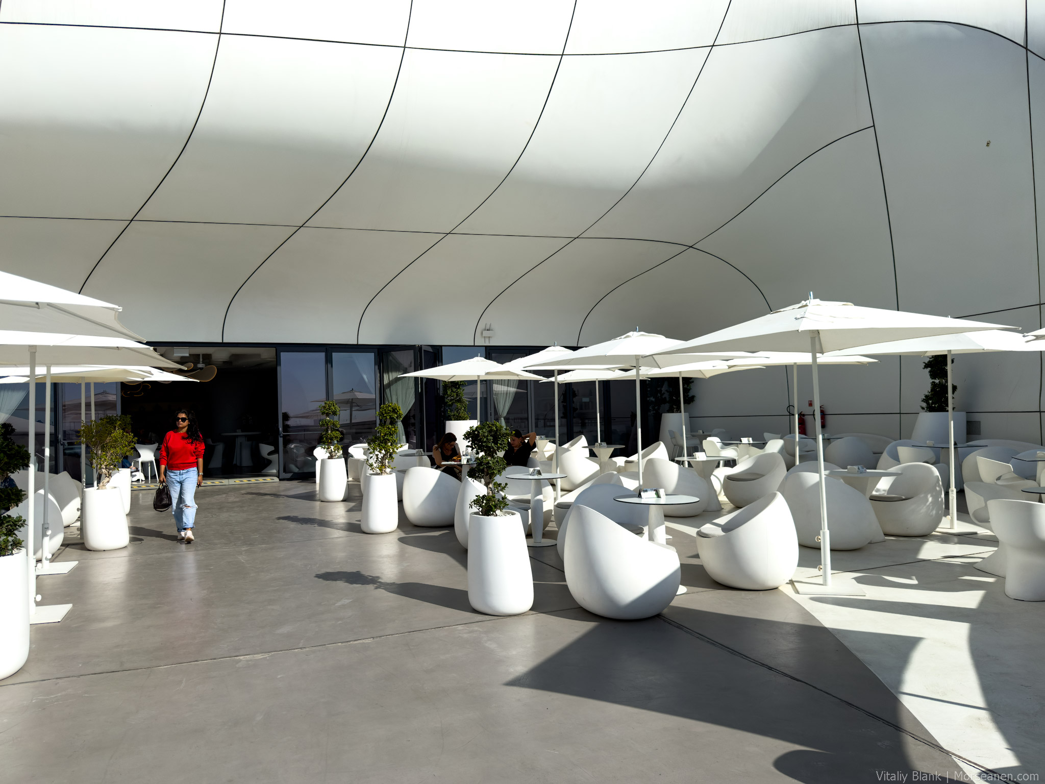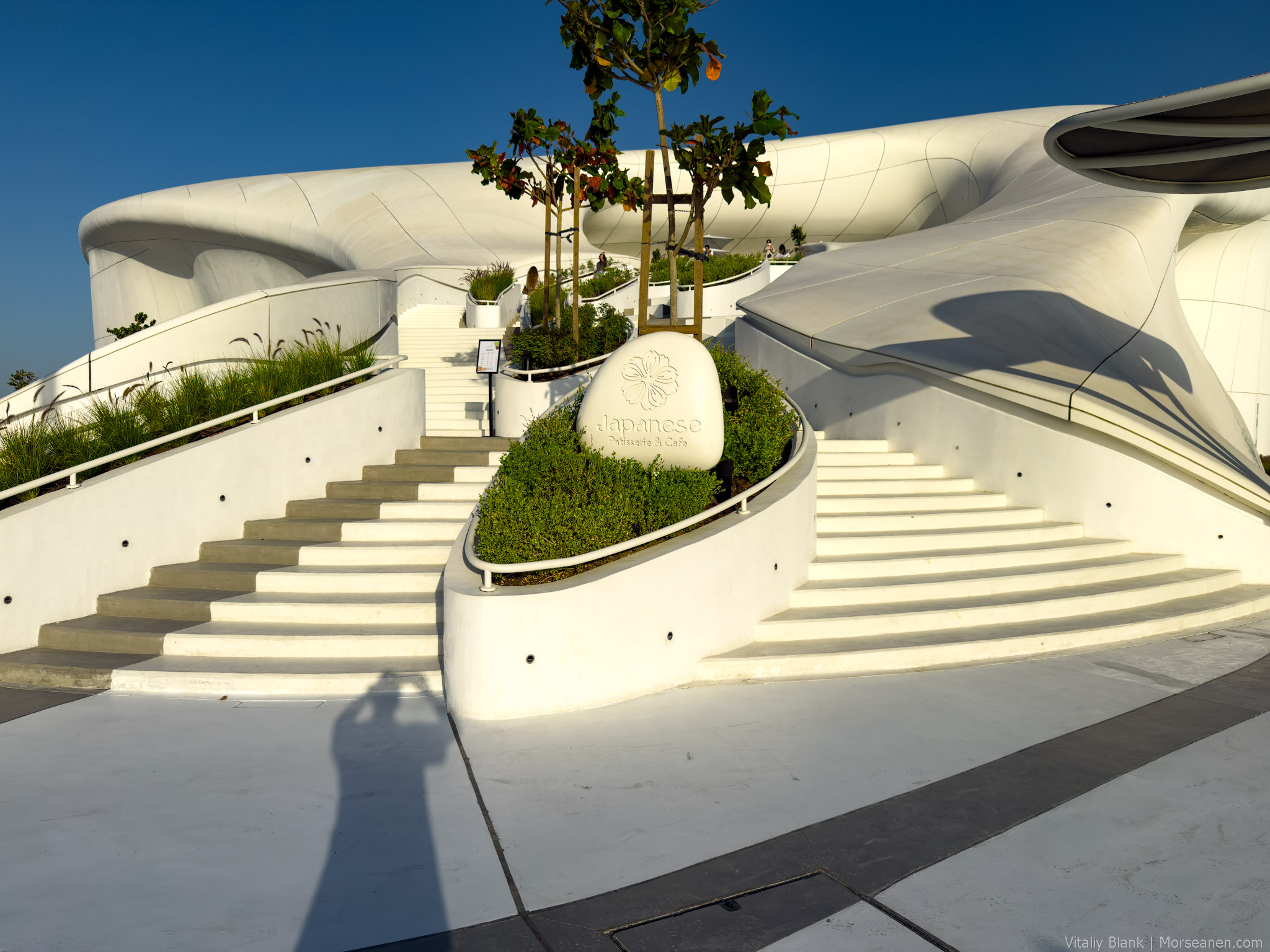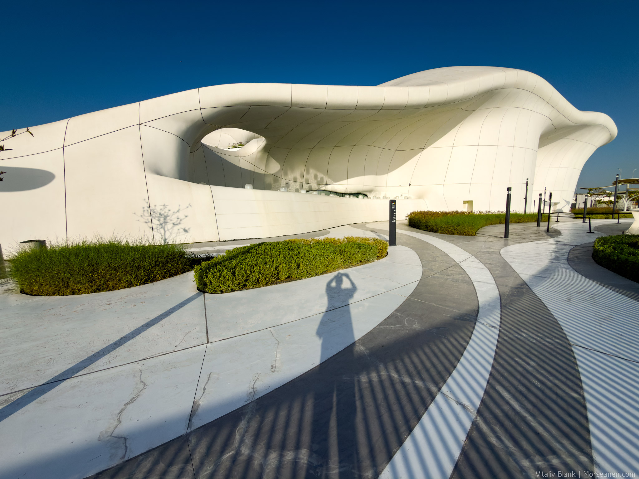 Здесь конечно архитектор внутри меня дал маху. Я был уверен вплоть до выставления на спор собственного мизинца, что здесь поработала Заха Хадид. Белая текучая структура, биоморфные кривые, волнообразные линии бетона — кто же, если не она, родная?! Но нет, пишут, что фасад музея был создан местными архитекторами из MZ Architects.
