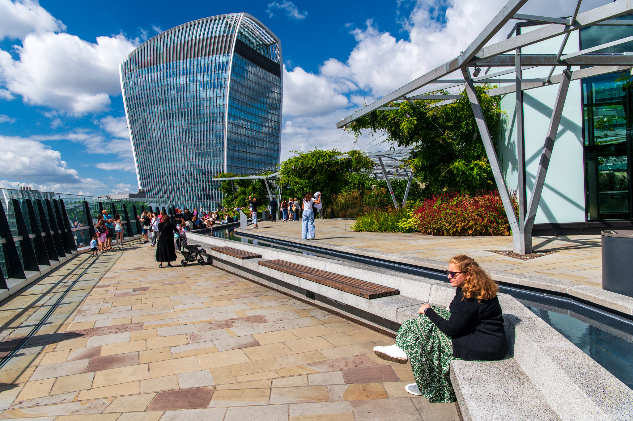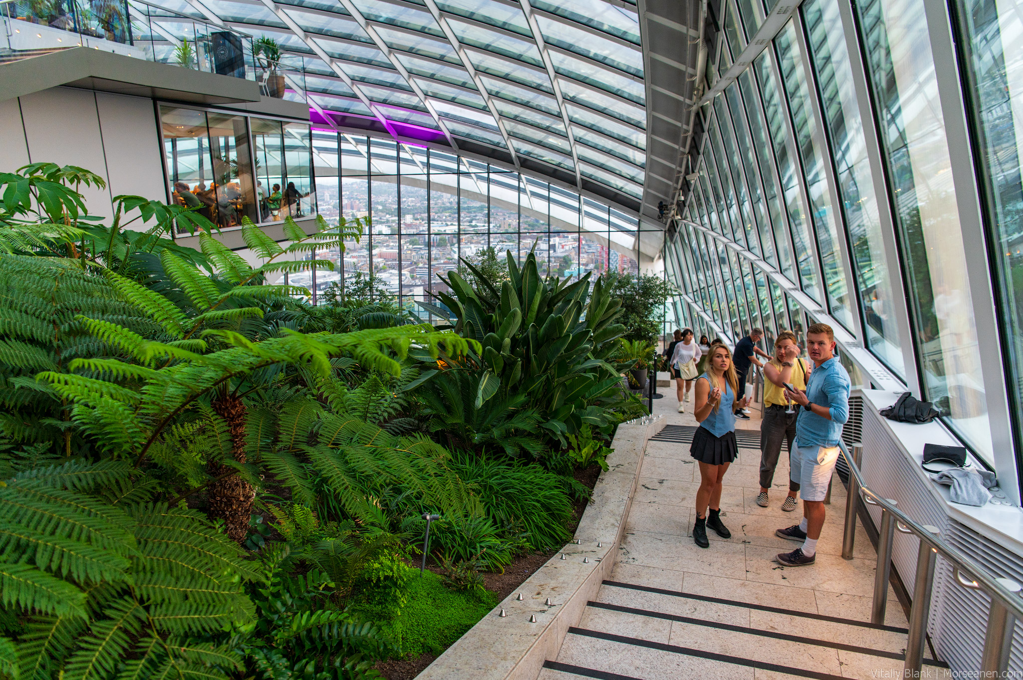 Крыша The Garden at 120 практически вплотную приближена к небоскребу интересной формы 1 Sky Garden Walk. И на сегодняшний день самая хайповая обзорная площадка Лондона находится в этом небоскребе.