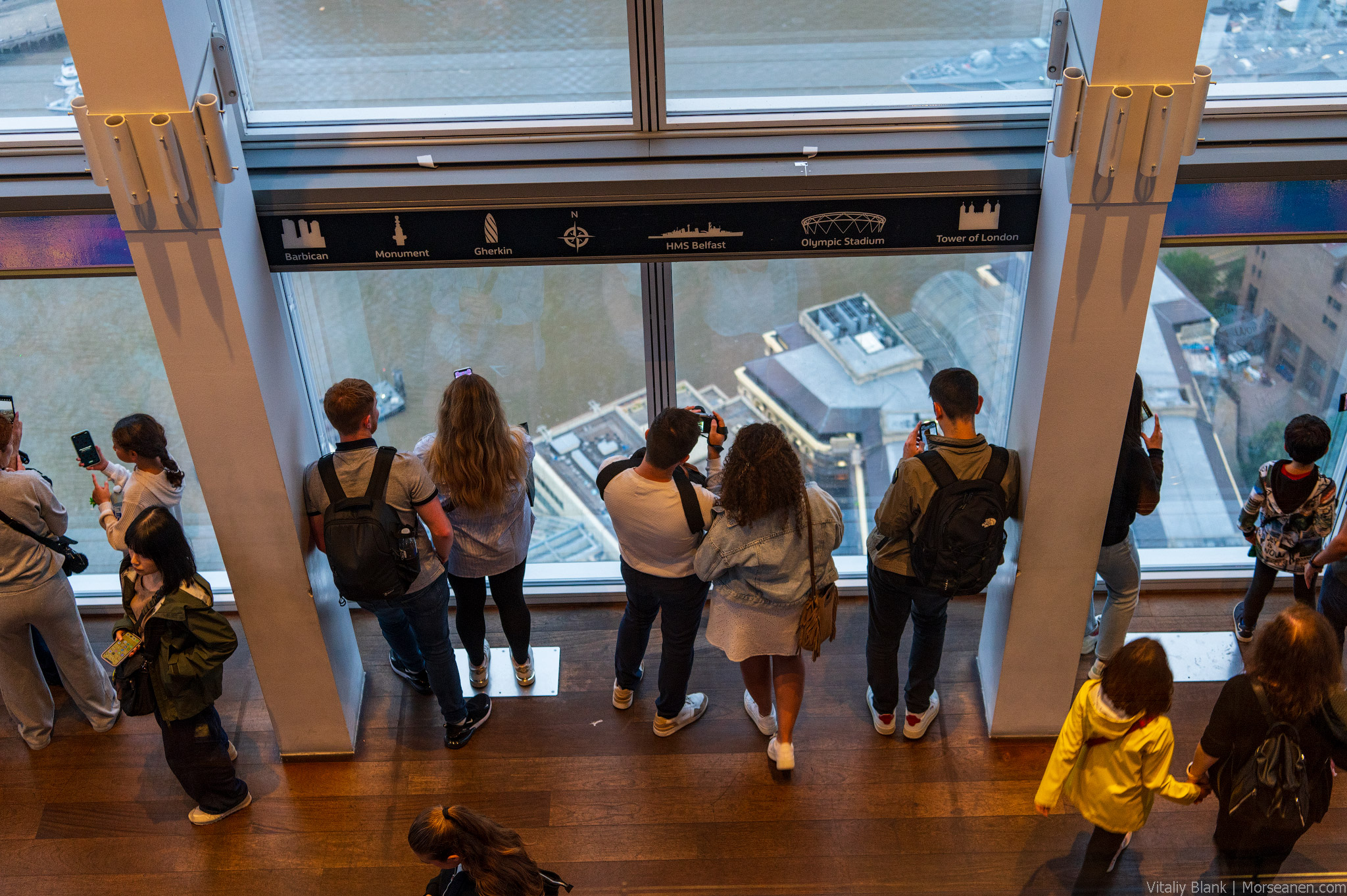 Что касается видов, то в хорошую погоду получите отличные ракурсы на извивающуюся Темзу, Сити и даже Канэ́ри-Уорф.