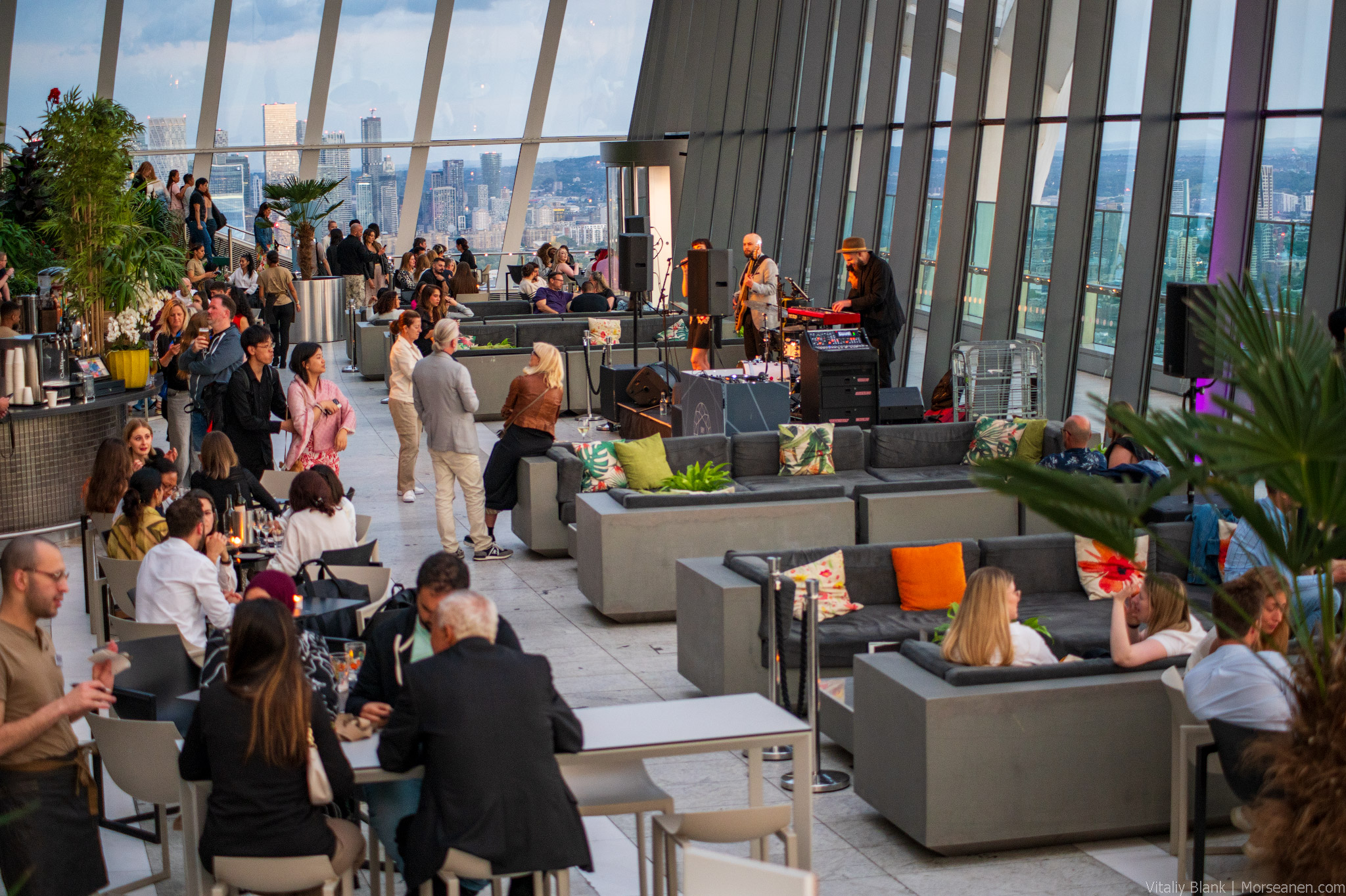 Помимо видов я кайфанул от масштабов пространства. Построить такой атриум на верхних этажах небоскреба — мое почтение.
