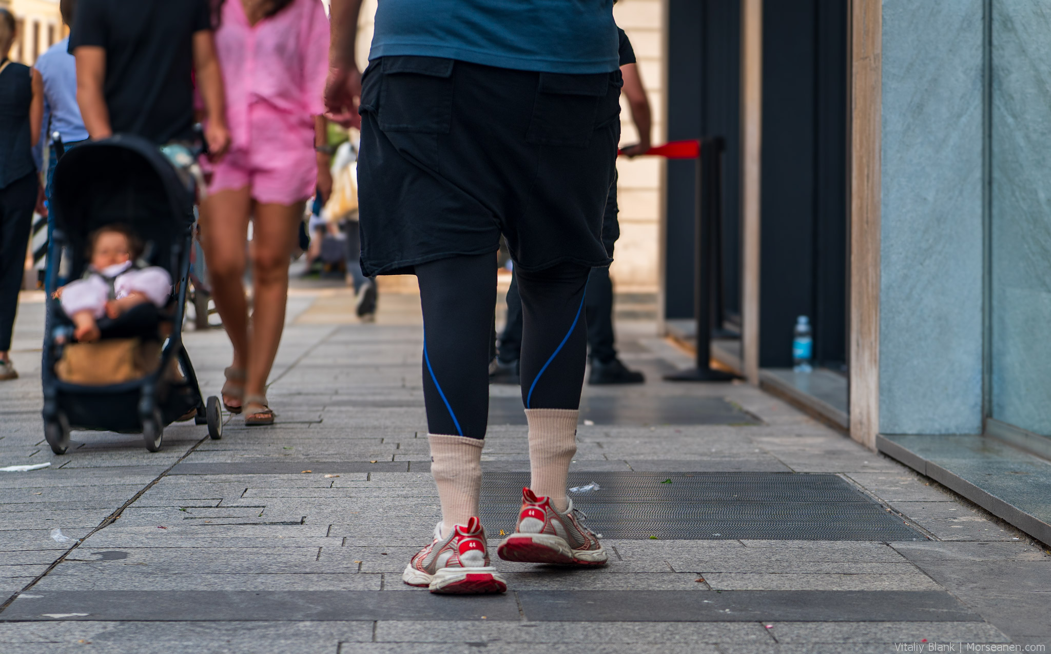 Из под шорт лосины , на них носки — модно, молодёжно, чо….