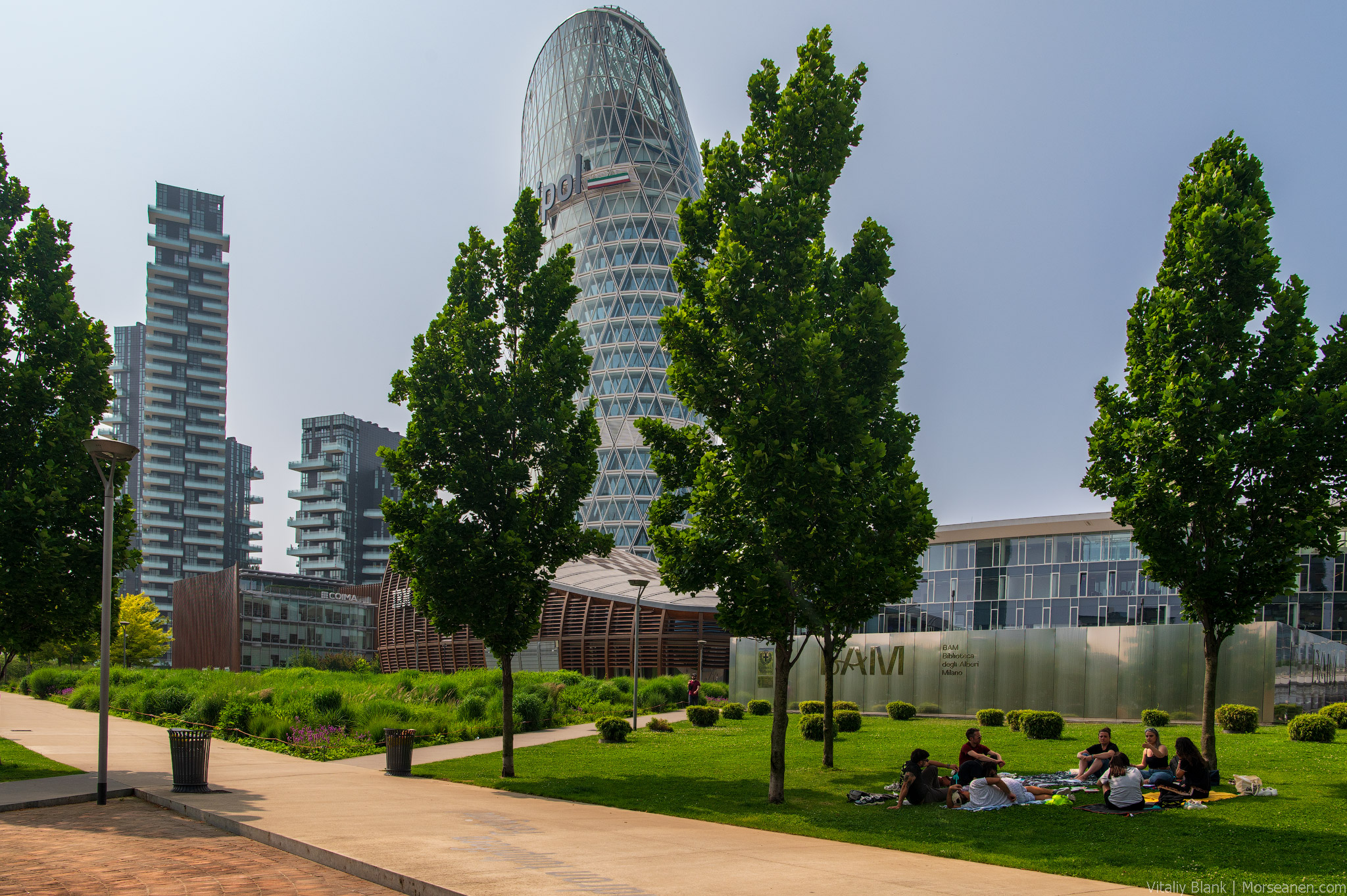 До СитиЛайфа не дошли, а Порта Нуова покажу. Это настоящий оазис посреди городского бетона. Жаль только, что на простых фотографиях без дрона трудно показать его размах.
