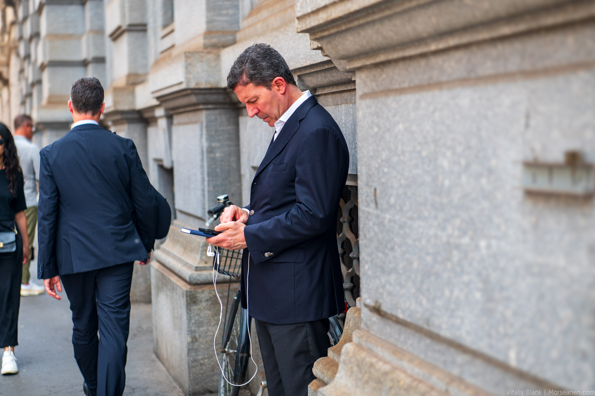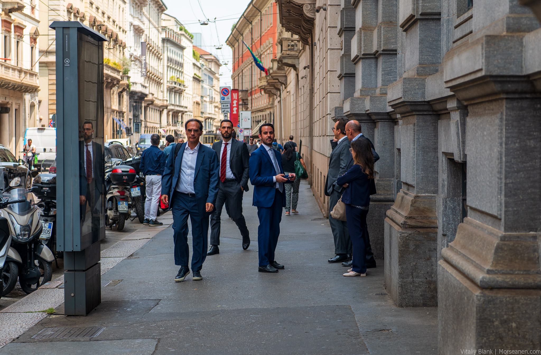 «На улицах Милана самая большая коллекция мужиков в офисной броне👨💼 от Армани (или Бриони). Нищеброды придумали для такого стиля название «олд мани«»